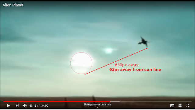 Now for that, I recurred to Darwin IV's wikipedia page to get the planet distance to it's star, so I can calculate the apparent size of the main sun in the sky, and use the 53:10~53:14 scene to estimate the creature's velocity, knowing it's stated size at 53:18.